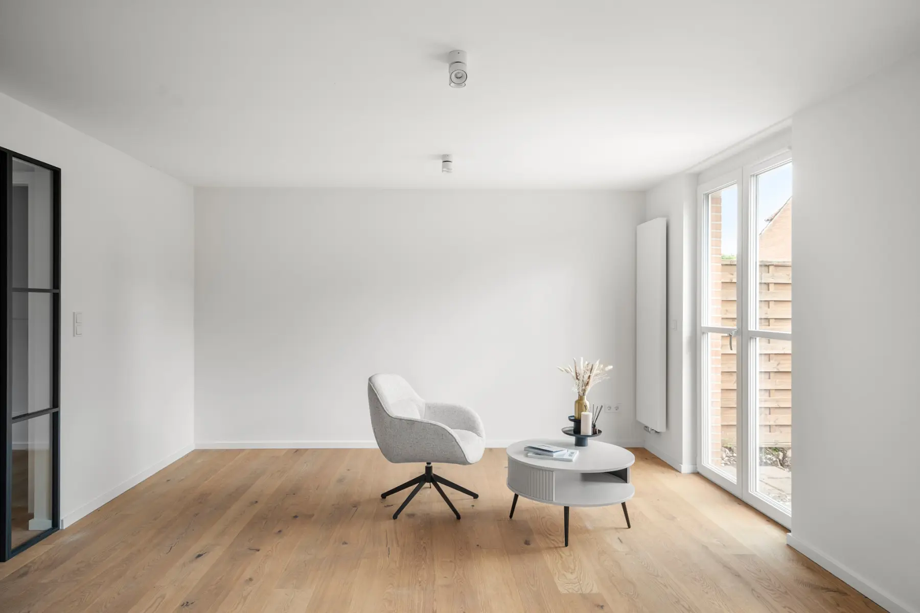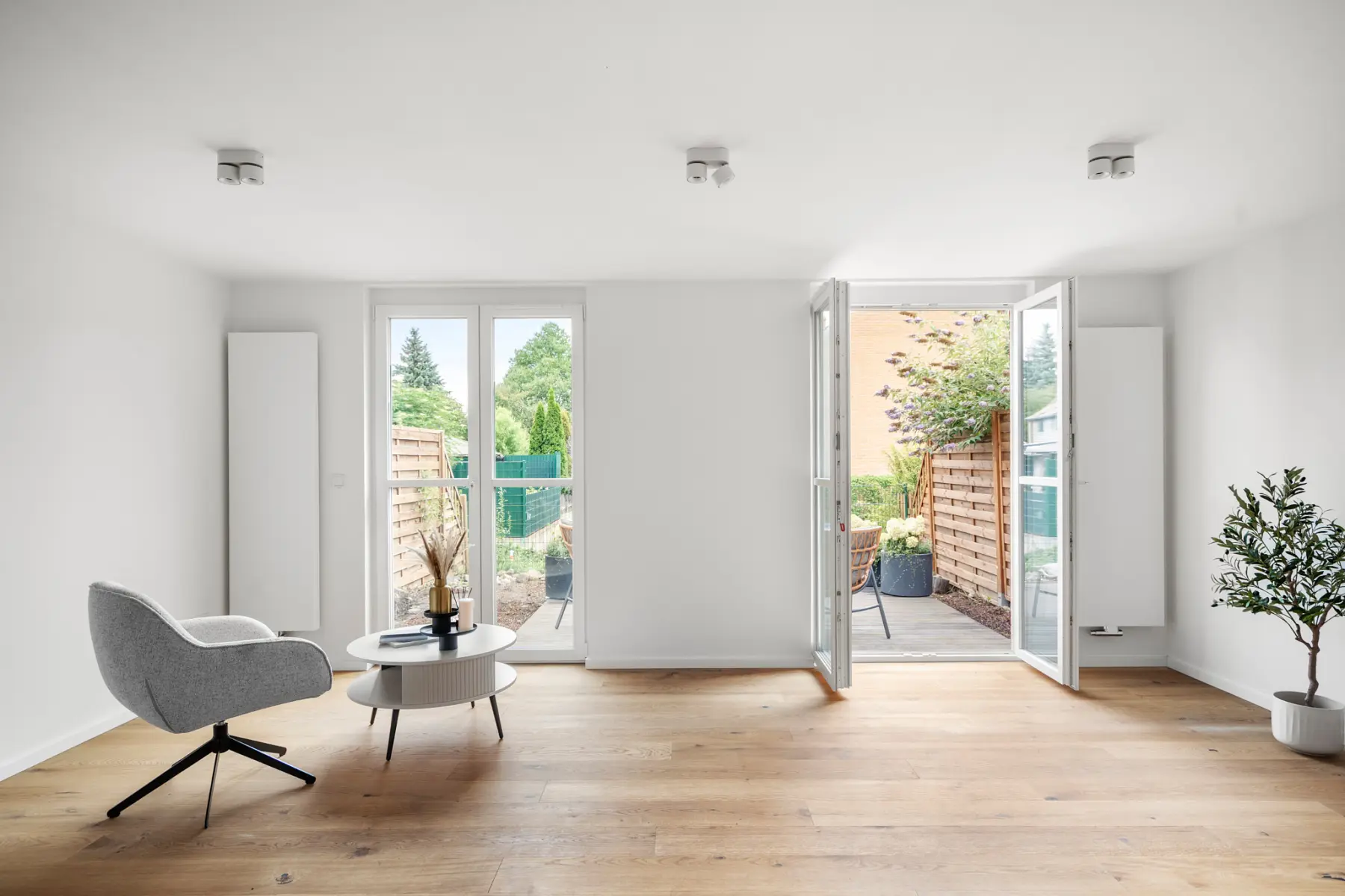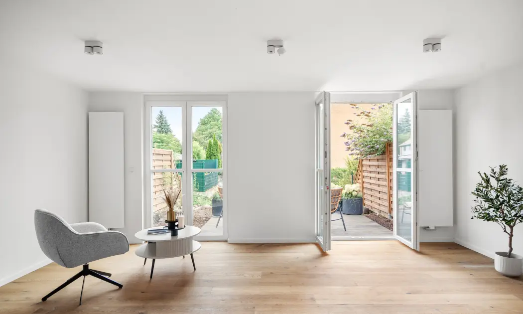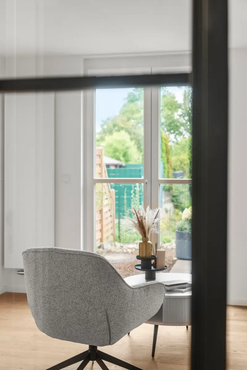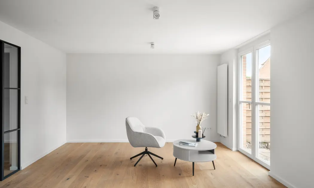 In ruhiger und grüner Lage von Werder (Havel) präsentiert sich dieses vollständig kernsanierte Reihenhaus mit ca. 105 m² Wohnfläche auf zwei Ebenen. Mit insgesamt vier Zimmern überzeugt es durch einen neu entwickelten Architekten-Grundriss, der klare Raumstrukturen, moderne Funktionalität und zeitlose Eleganz harmonisch vereint. Große Fensterflächen sowie stilvolle Glastüren, die den Wohnbereich elegant vom Flur separieren, sorgen für ein lichtdurchflutetes und zugleich strukturiertes Raumgefühl.
