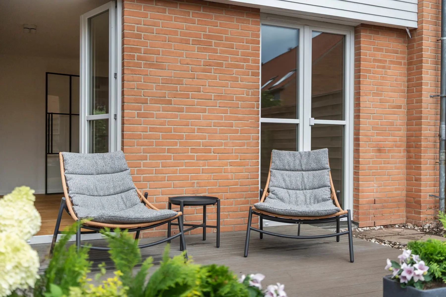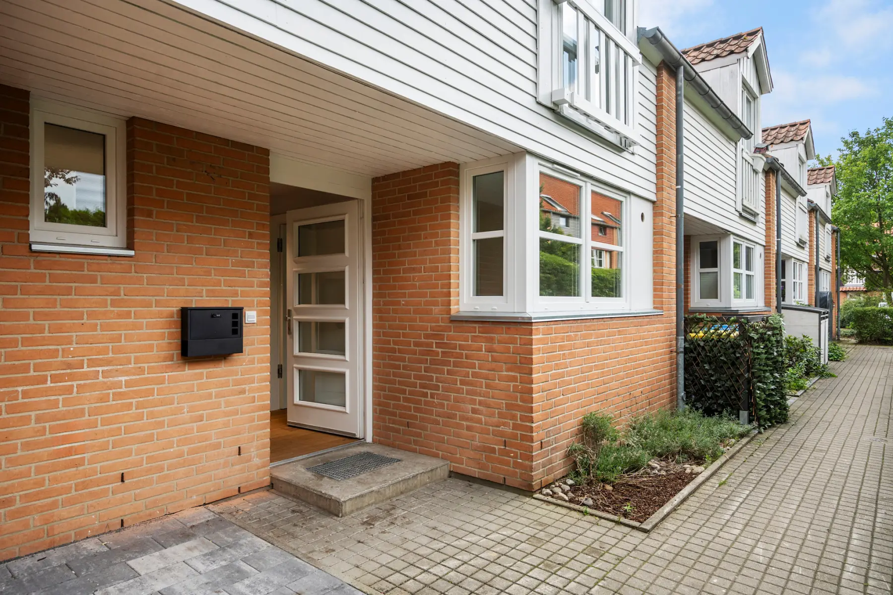 Im Erdgeschoss bildet der großzügige Wohn- und Essbereich mit direktem Zugang zur sonnigen Terrasse das Herzstück des Hauses. Die separate Küche wird durch einen praktischen Hauswirtschaftsraum sinnvoll ergänzt. Im Obergeschoss befinden sich drei helle Schlafzimmer sowie ein hochwertig ausgestattetes Badezimmer mit Badewanne. Auf der unteren Ebene steht zusätzlich ein Gäste-WC zur Verfügung. Hochwertige Oberflächen, neue Eichenparkettböden und eine reduzierte, elegante Formsprache verleihen dem Haus einen klaren und repräsentativen Charakter.